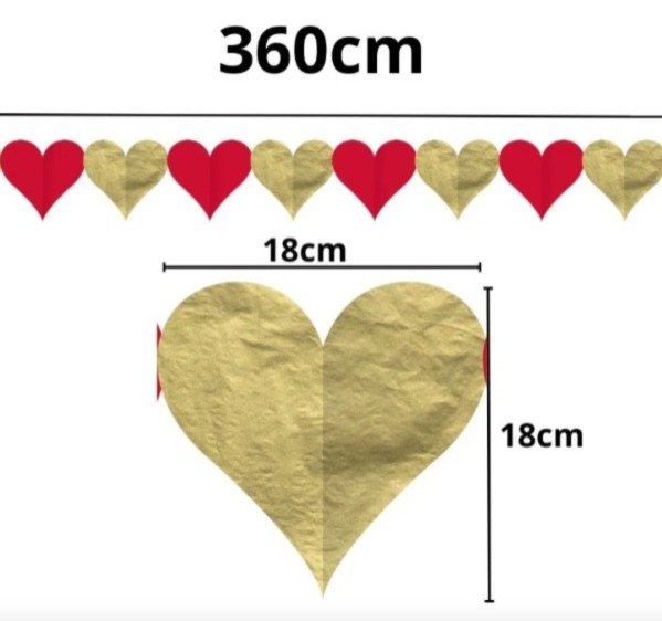 La Guirnalda Corazones Dorados y Rojos de 3.60 mts es el complemento perfecto para esos momentos especiales. Con sus vibrantes colores dorados y rojos, añade un toque cálido, romántico y festivo a cualquier espacio.