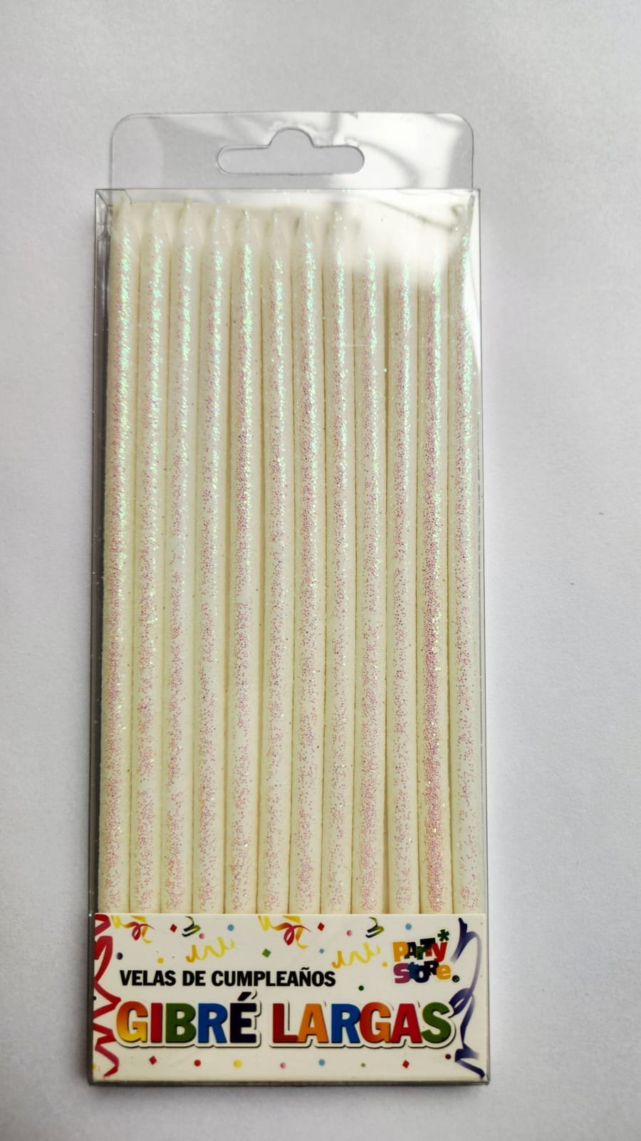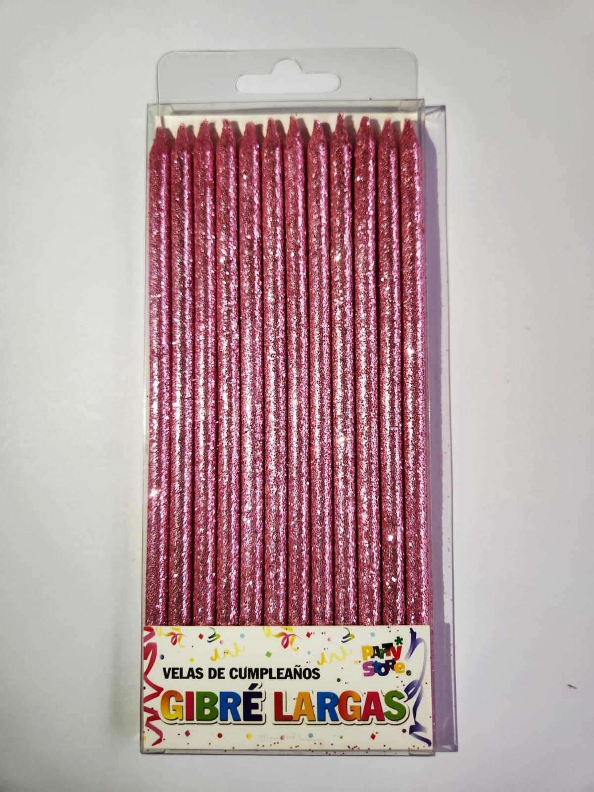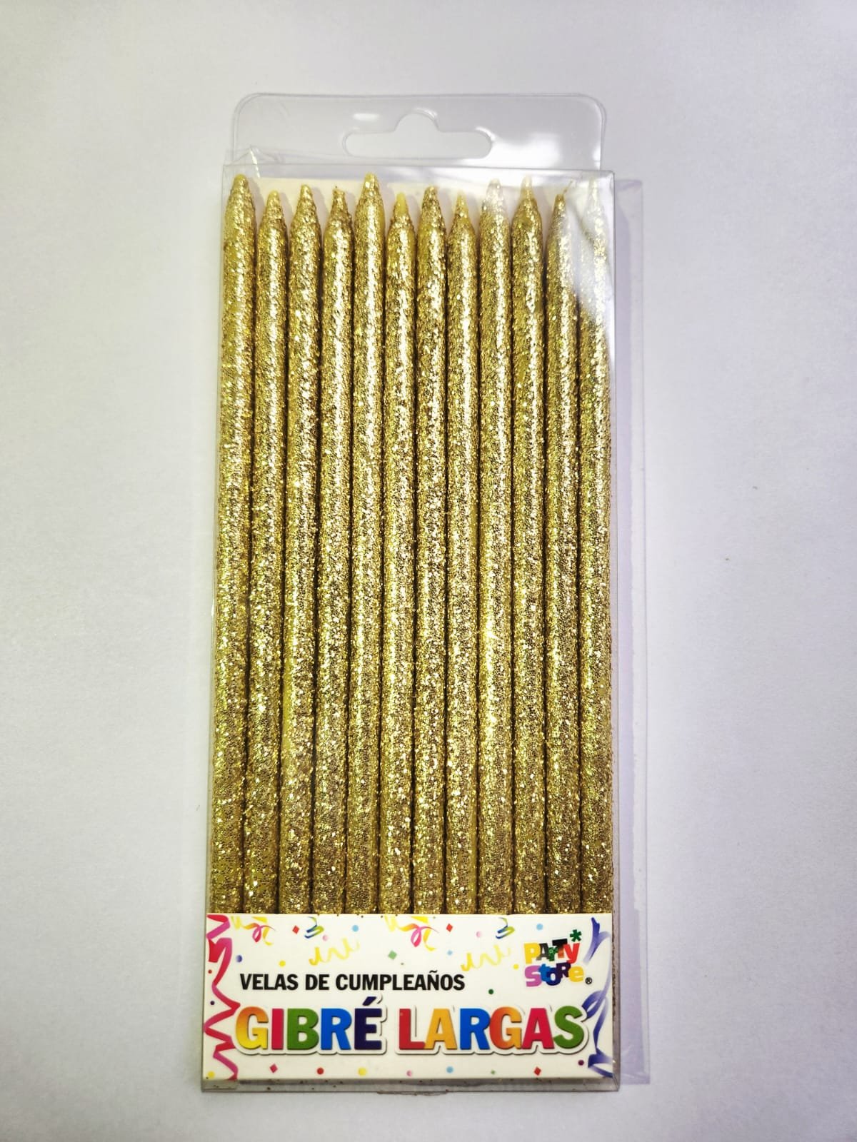 ¿Buscas agregar un toque mágico a tus celebraciones? Esta vela larga con gibre (x12) es perfecta para llenar cada ocasión de calidez y un destello de elegancia.